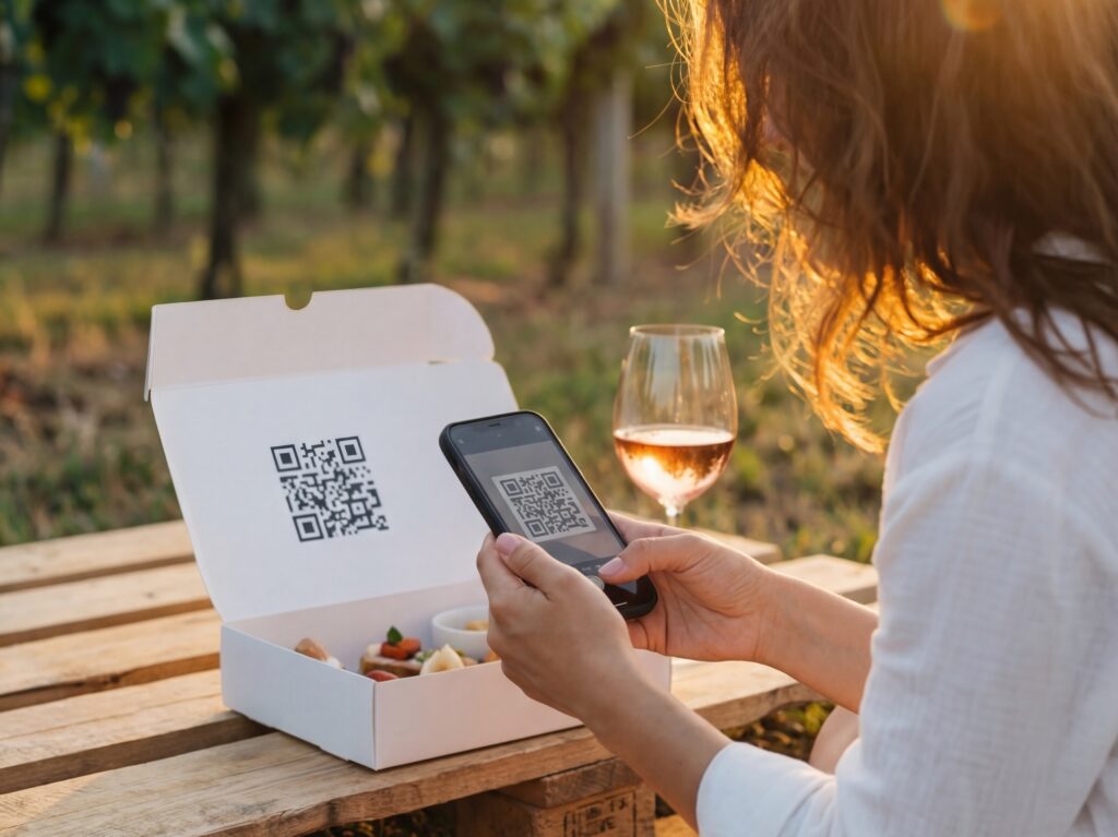 Ogni scatola e ogni calice ha il suo QR Code. Inquadra, e chiudi gli occhi. Una voce ti guiderà in una degustazione sensoriale immersiva di 30 secondi. Ti racconteremo la storia di quel sorso mentre lo stai bevendo. È un viaggio privato tra te, il vino e la voce.